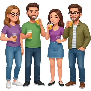 ginger woman short hair, pink shirt, sipping energy drink blue eyes cosy emoji