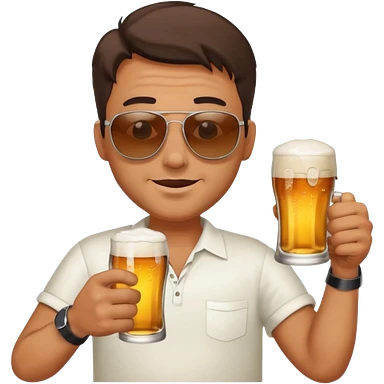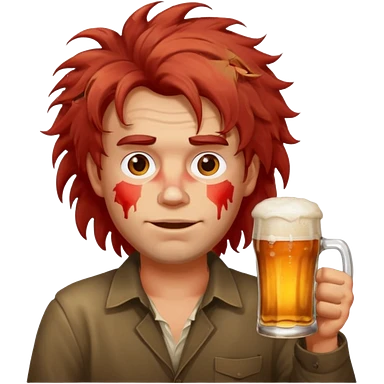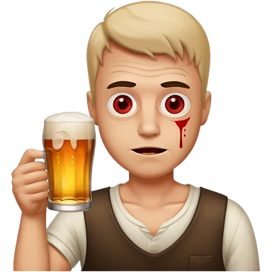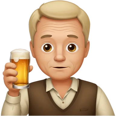 Drunk emoji holding a beer bottle, with one eye half-closed, a wobbly expression, and flushed cheeks, showing signs of intoxication emoji
