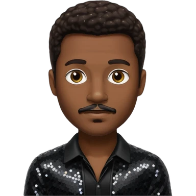 Durand Bernarr with dark brown hair and short mustache, black sequin outfit emoji