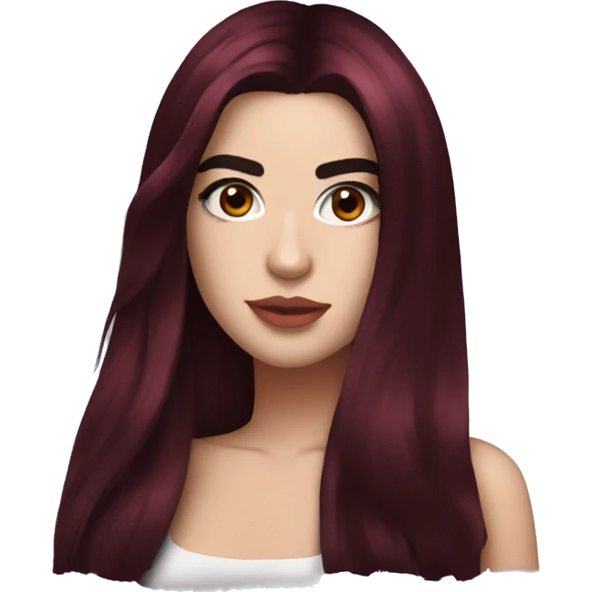 dua lipa with dark red long hair emoji | AI Emoji Generator