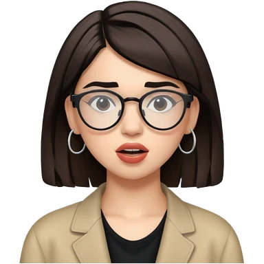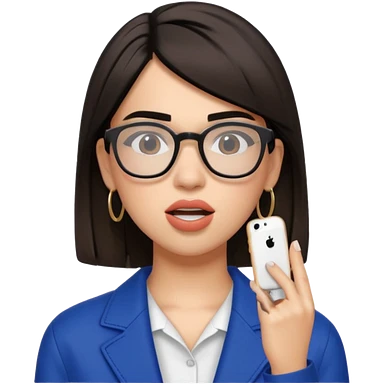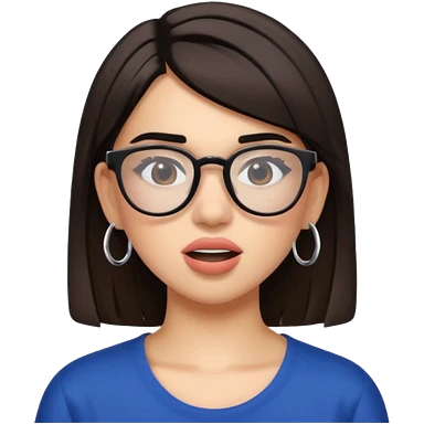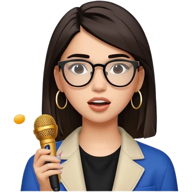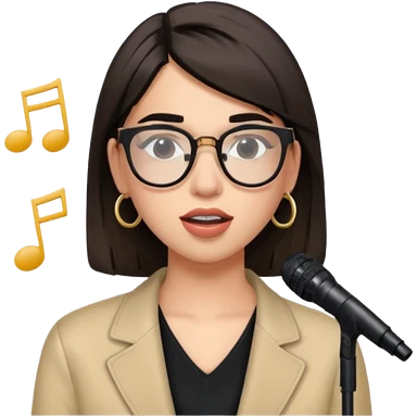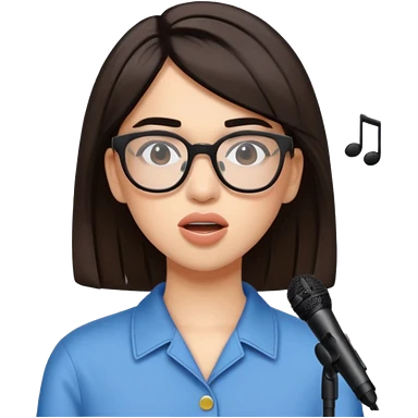 Singer with long dark hair and red dress singing with an old microphone emoji