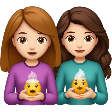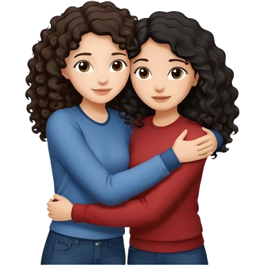 duas meninas lindas uma de cabelo encaracolado e preto e a outra de cabelo castanho ondulado, a darem um abraço de amizade emoji | AI Emoji Generator