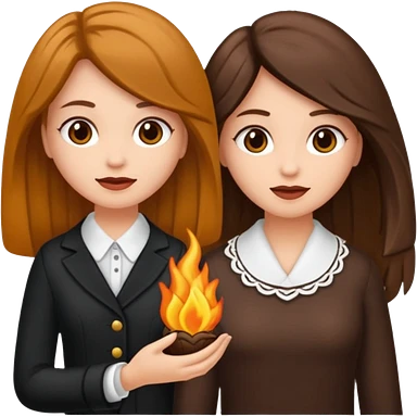 Uma cabelo loiro lizo e grande outra cabelo ondulado meio castanho meio loiro e outra lizo castanho emoji