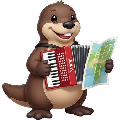 smiling duck-billed platypus holding an accordion-folded AAA roadmap emoji
