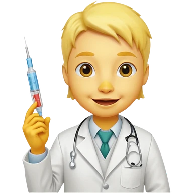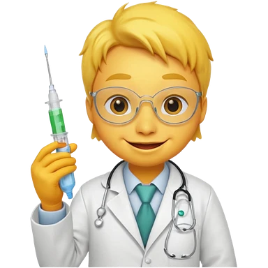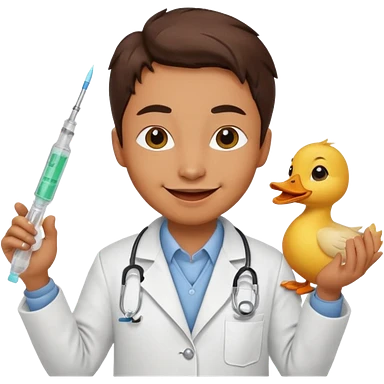 Duck doctor holding syringe and cheerful grin. emoji | AI Emoji Generator