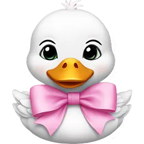 a yellow duck with a bow on its head in a lake surrounded by nature emoji