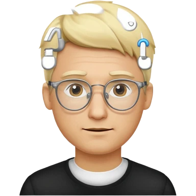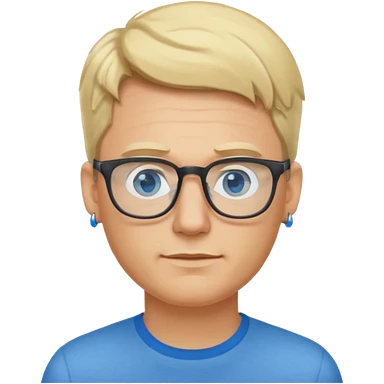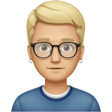 blond man wearing earrings, wearing glassess, with no beard emoji