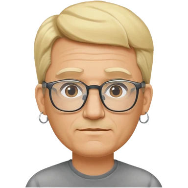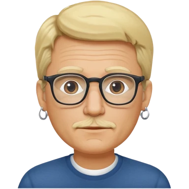 blond middle aged man wearing big earrings, wearing glassess, with no beard emoji