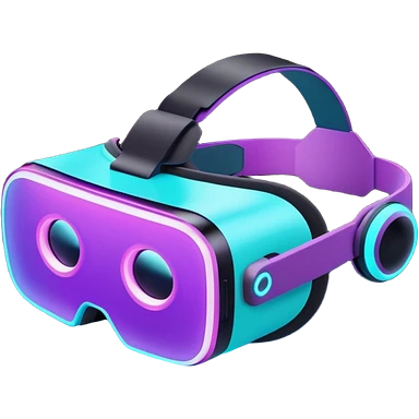 Futuristic glowing neon VR headset, purple and cyan light, dark background, digital tech style emoji
