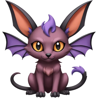 Asymmetrical dark dull pointy edgy Noivern-Noibat-Purloin-Torracat-Lykoi-Caracal-bat-cat-Fakemon-fusion-hybrid-creature with bat-wings on head as ears emoji