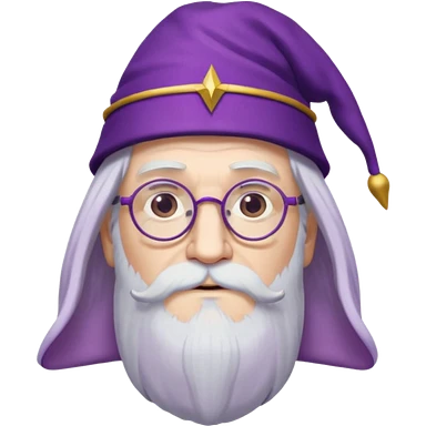 dumbledore, long white hair, wear purple magic hat, glasses emoji