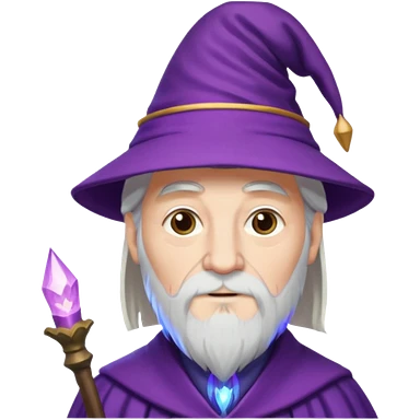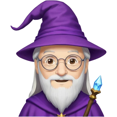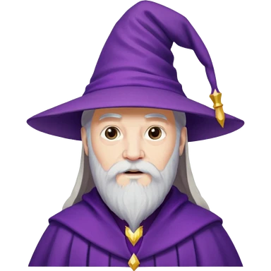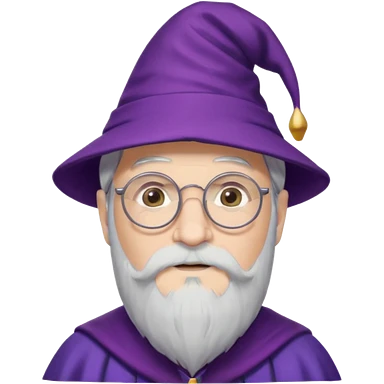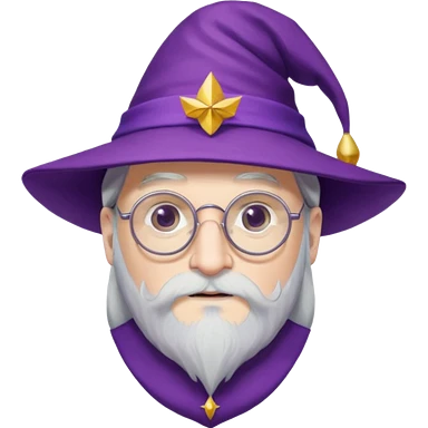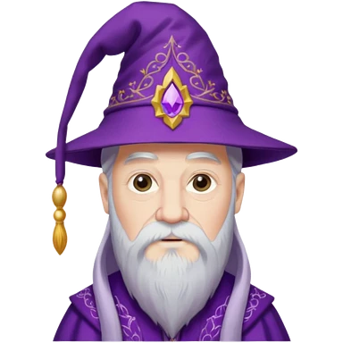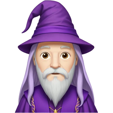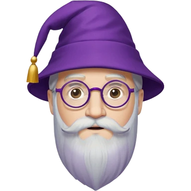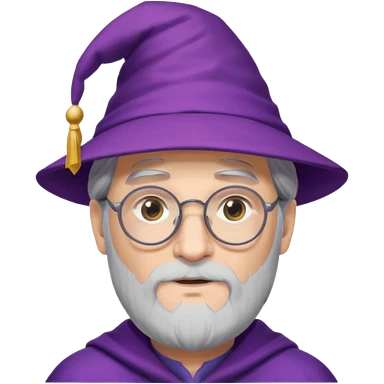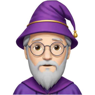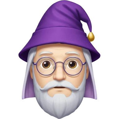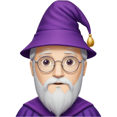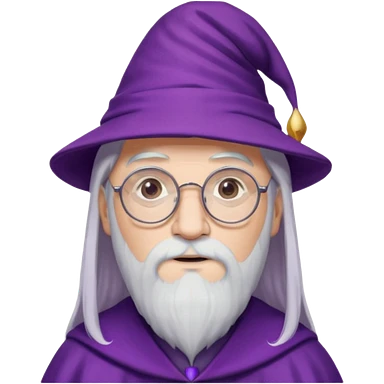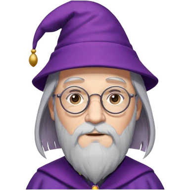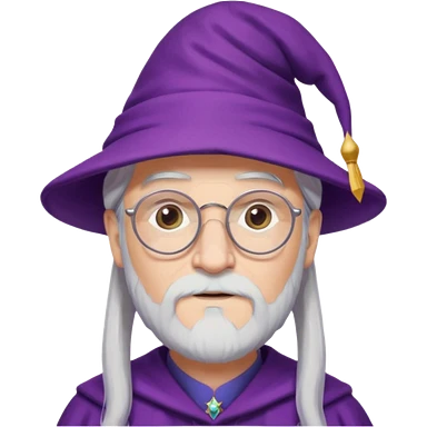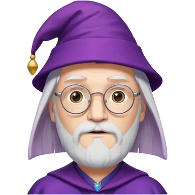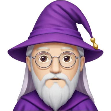 dumbledore, white hair, wear purple magic hat, glasses emoji | AI Emoji Generator
