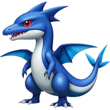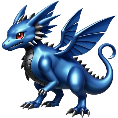 Dusky Glossy Oil-Sheen Blackened Blue Pokémon-Fakémon-Digimon-Latios-Garchomp-Creature, (full body) emoji | AI Emoji Generator