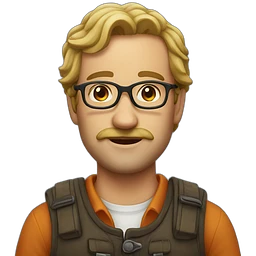46-year-old white Dutch man with Grey glasses, light brown hair and a white blouse with small chairs on it emoji