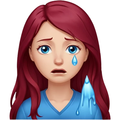 DV Awareness female long Burgundy hair blue eyes crying emoji