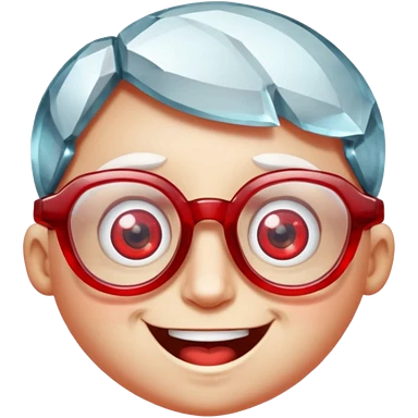 A single crystal gemstone character wearing glasses, chunky and irregular with faceted very sharp sides, [red], big glossy eyes behind the glasses and a wide happy smile, , high detail, soft lighting, centered on a plain dark background emoji
