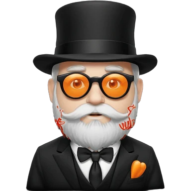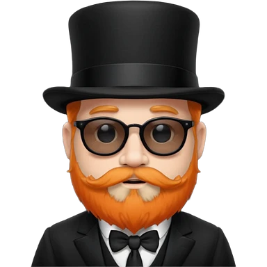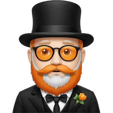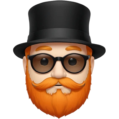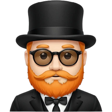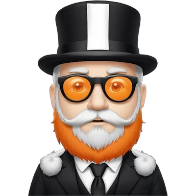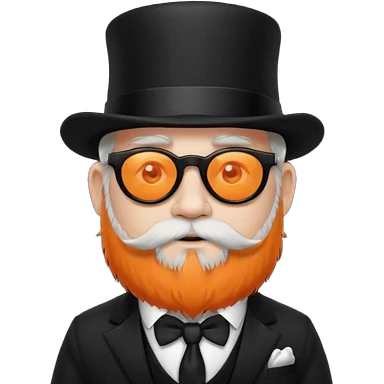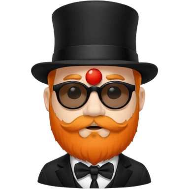 dwarf with a beard, a hairy body black sunglasses and a black top hat on his head. He also has a black tie on his chest. His nose is orange and his skin is pale white. emoji