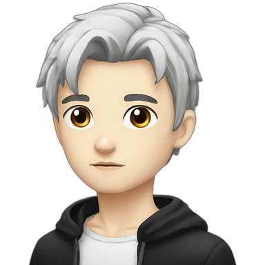 Anime white boy serious Dwarf with black hair and black clothes emoji