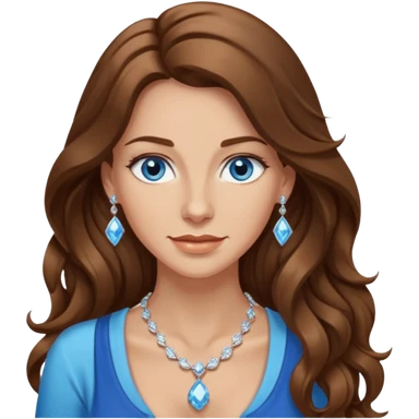 Extra Long wavy hair, brown hair, blue eyes Caucasian not young sexy diamond necklace emoji