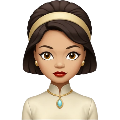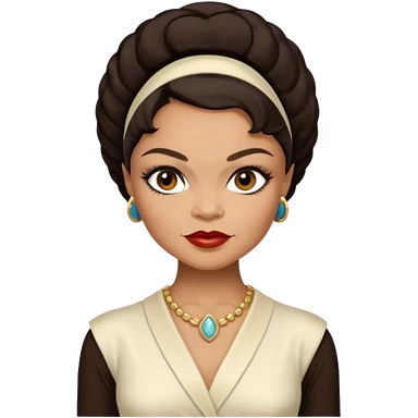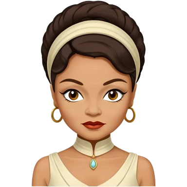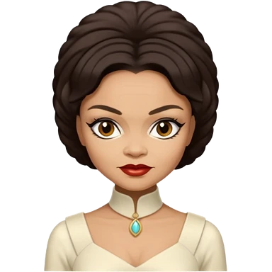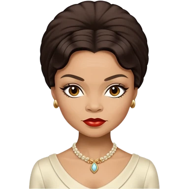 Eartha Kitt with dark brown hair, ivory outfit emoji