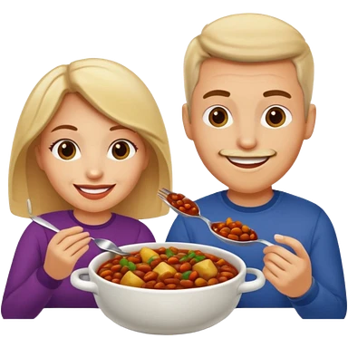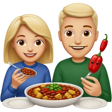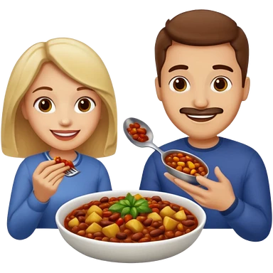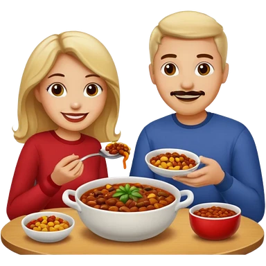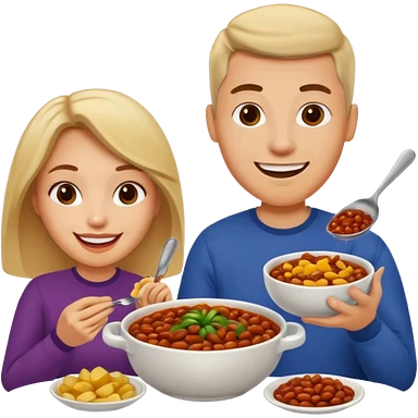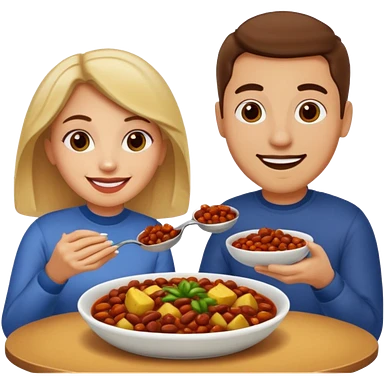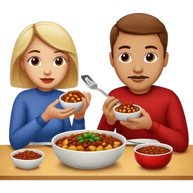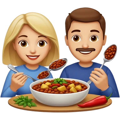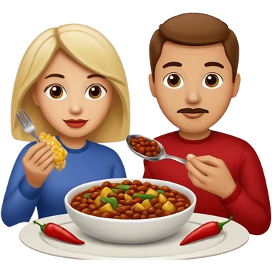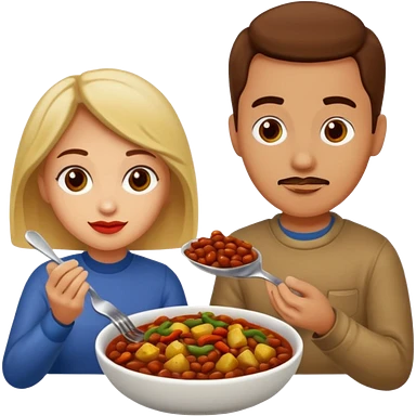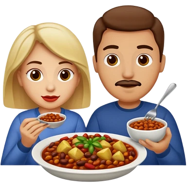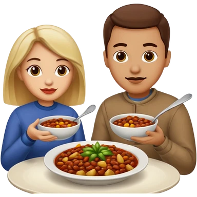 ligth couple having dinner of chili, beans and potatoes emoji