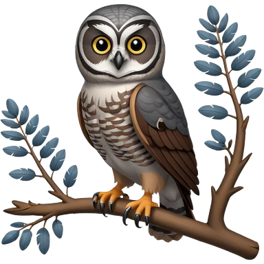 Beautiful magical gothic style, ultra detailed owl in shades of blues, grays. Sitting among tall dark night style forest trees emoji
