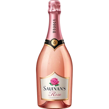 bottle of sparkling rosé champagne with a rose logo on the label, tilted up and to the right, no glass emoji