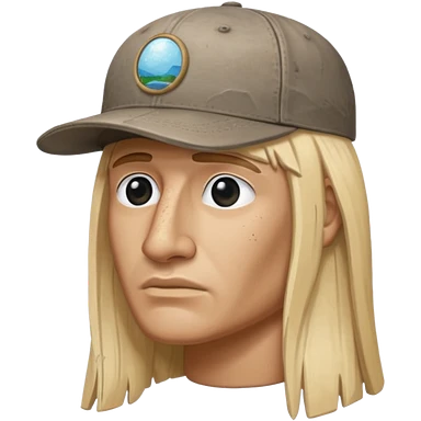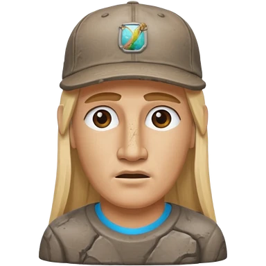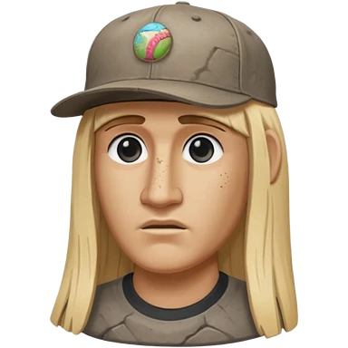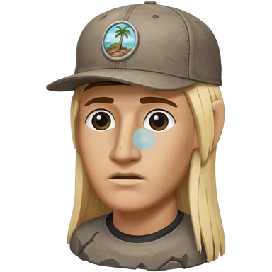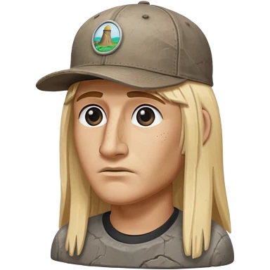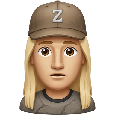 Easter island head rock with long blonde hair and a backwards baseball cap emoji