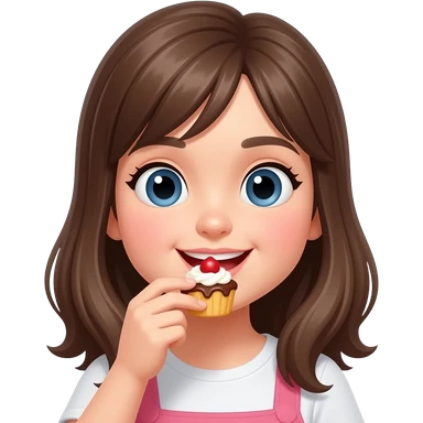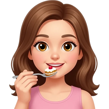 Brown girl eating cereal emoji. Straight hair. Brown eyes. Pakistani emoji