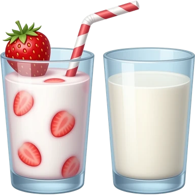 strawberry milk drink emoji, glass of milk with strawberry chunks and ice, soft pink swirl, cute icon style emoji