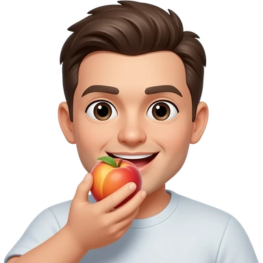 an upset emoji holding up in one hand a middle finger and the other hand eating a peach emoji