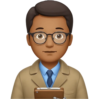Middle-aged asian male vet – glasses, coat, writing notes on clipboard. emoji