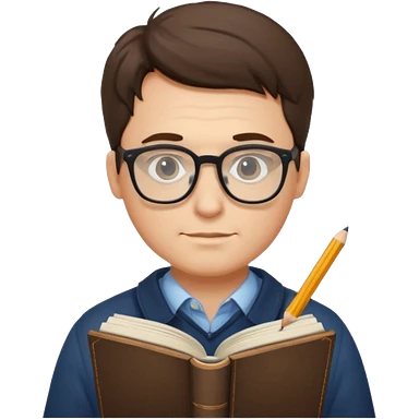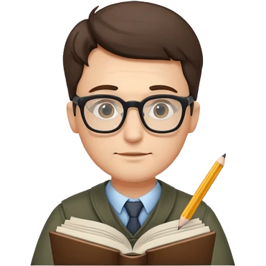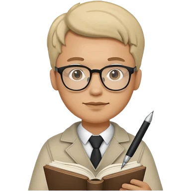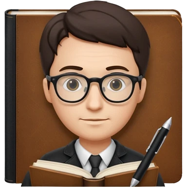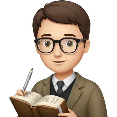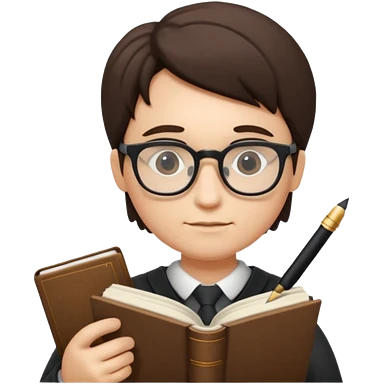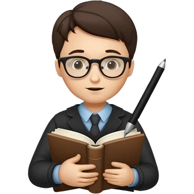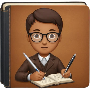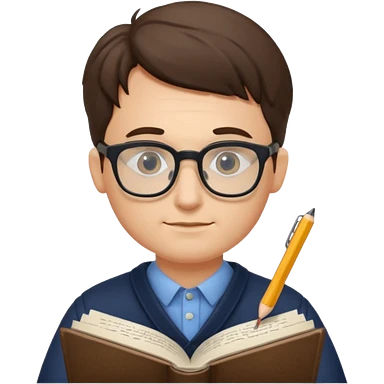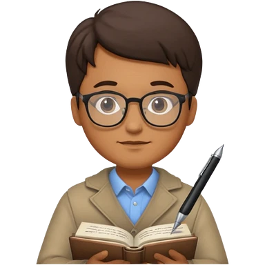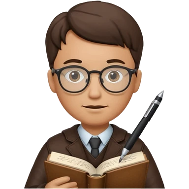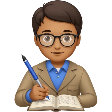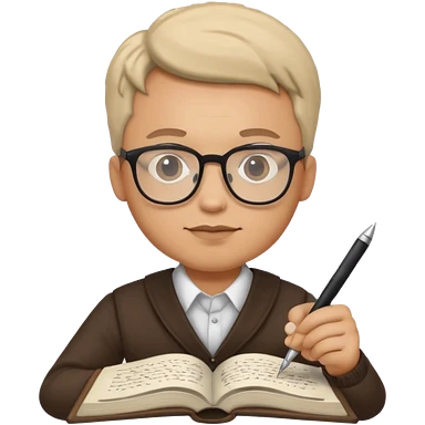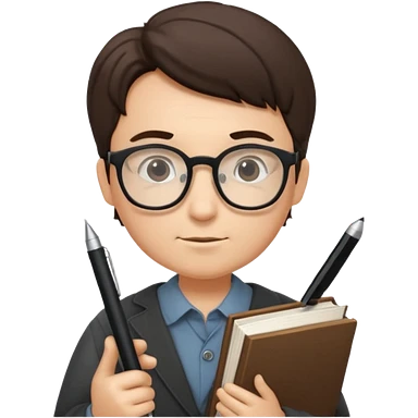 writer holding big pen in hand and book in other hand, wearing glasses emoji