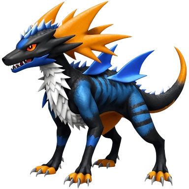 4-legged, digitigrade, clawing, sharp, spiky, cool, badass, angry, edgy Sergal-Sharpedo-Houndoom-Garchomp-Nargacuga-Silvally-Vaporeon-fusion-hybrid-creature, full body emoji