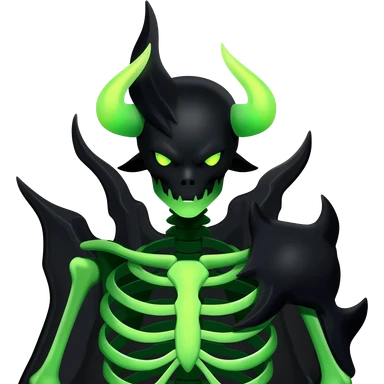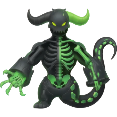 Horned Evil Cool Handsome Badass Edgy Obsidian-black and neon-glowing-green skeletal Meloetta-Salandit-Gorebyss-Zygarde-Pokémon-Fakémon-creature-fusion-hybrid emoji