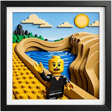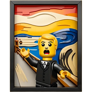 Edvard munch the scream landscape in the style of Lego with a minifig emoji | AI Emoji Generator