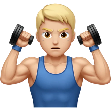 A focused athlete working out on a strength training machine in a modern gym. Muscles engaged, expression determined, demonstrating power and endurance. The gym is filled with equipment like dumbbells, barbells, and mirrors reflecting effort, creating a high-energy atmosphere. emoji