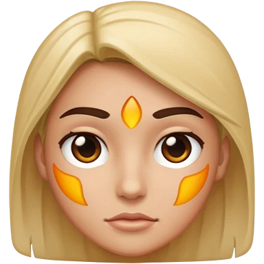 realistic white blode long hair girl in a blue dress holding a box with effort emoji