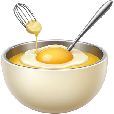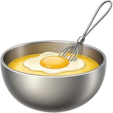 beaten egg in a bowl, There is a whisk inside the bowl. emoji