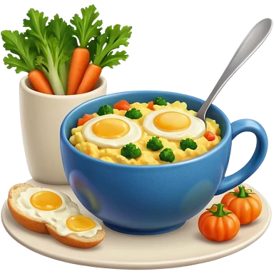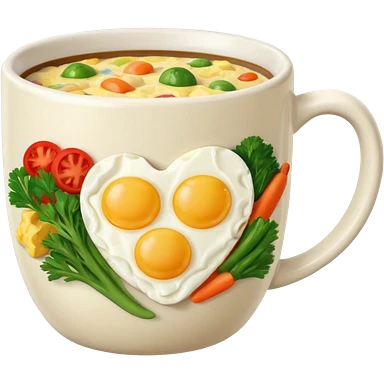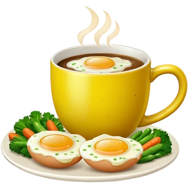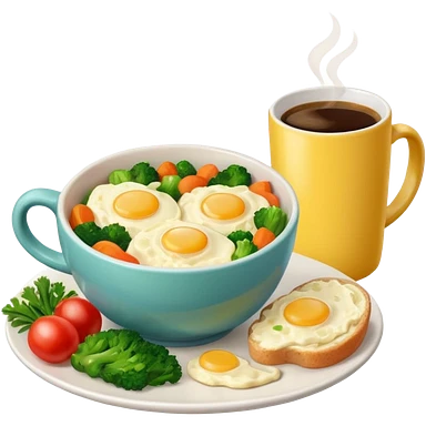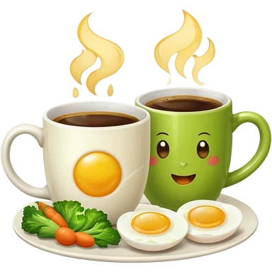 eggs with veggies and one coffee in cute mug on the side emoji