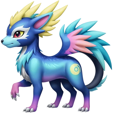 Shiny Sunny furry neon colorful scaly painted Asian pastel-gradient Absol-Meloetta-Solgaleo-Luxray-Suicune-fusion emoji