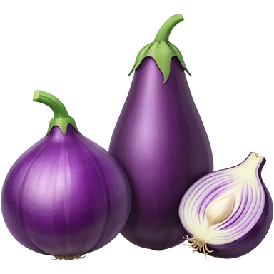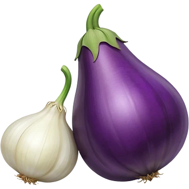 Eggplant beside onion and garlic emoji | AI Emoji Generator