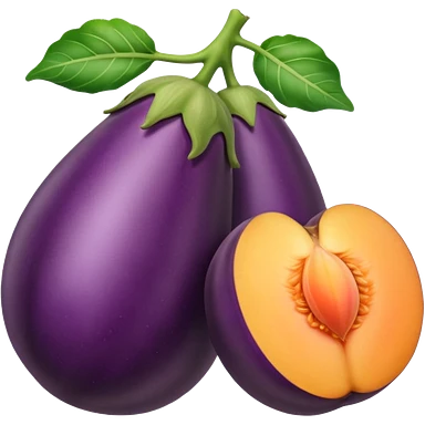eggplant with milk flowing out from the bottom, like a milk waterfall emoji