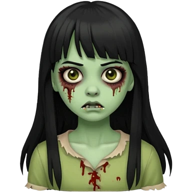 faça o emoji de uma menina zumbi de cabelos longos pretos com franja emoji