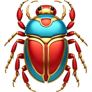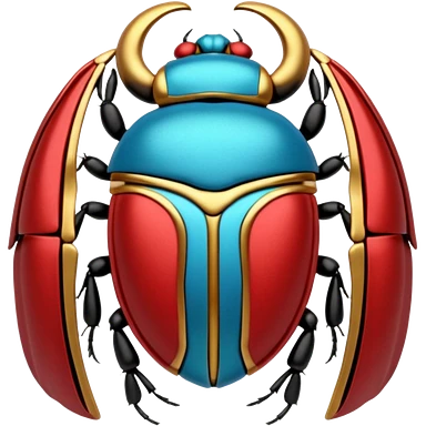 colorful cyan, red, and gold, shiny ancient Egyptian-styled holy metal scarab emoji