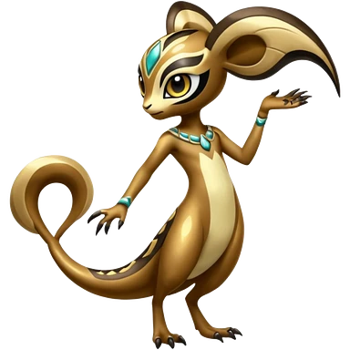 Egyptian Shiny Smooth Soft Glossy Tribal Exotic Colorful Tropical Meloetta-Venom-Heliolisk-Helioptile-Monster-Animal-Pokémon-Fakémon-fusion, full body, tribal markings emoji