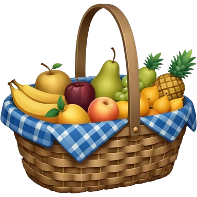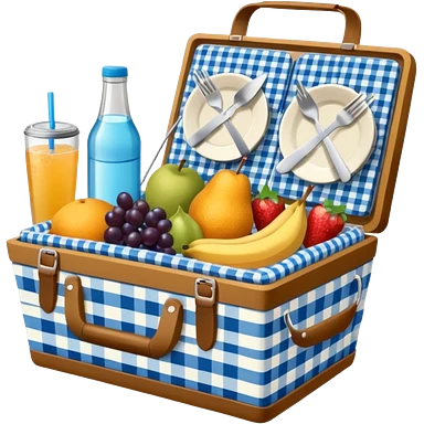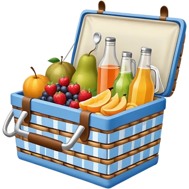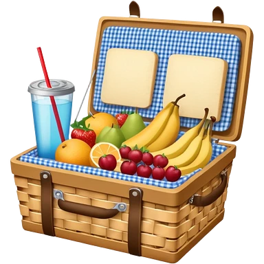 Pink basket, plaid lining, with both food, drink and fruits emoji