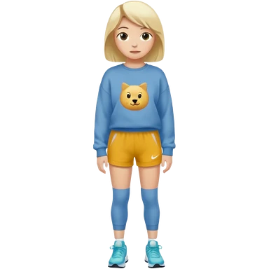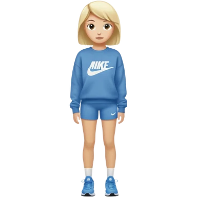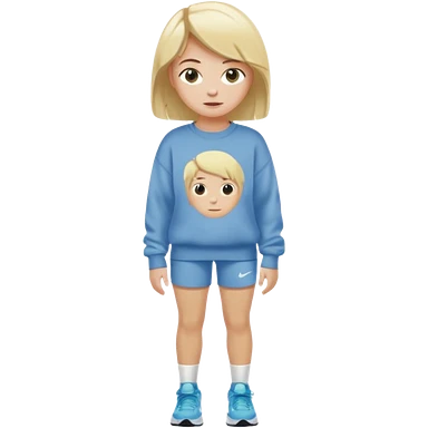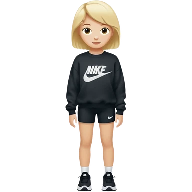 Ein Mädchen mit kurz blonden Haaren einer Baggyhose einen langen Pullover und Nike Schuhe emoji