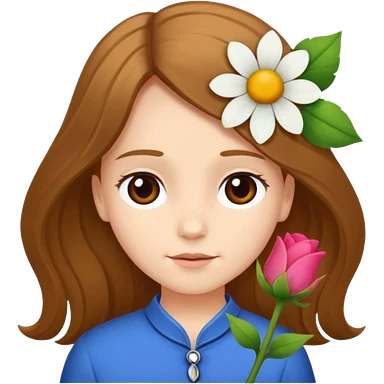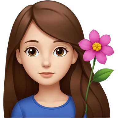 Ein braunhaariges Mädchen (glatte Haare ) mit einen Blume hinter dem ohr lange haare zur Seite kuckend emoji