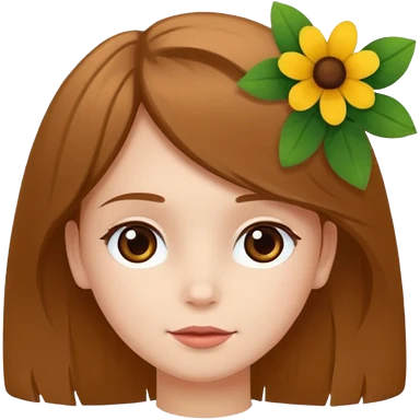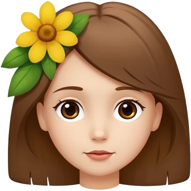 Ein braunhaariges Mädchen (glatte Haare ) mit einen Blume hinter dem ohr lange haare zur Seite kuckend Blume hinter dem rechten Ohr so das man es sieht zur Seite schauen soll das Mädchen emoji